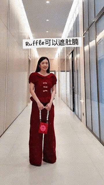 马上就是春节了,这样一件红色露背连体裤,穿起来惊艳又大方,实在太高级了。